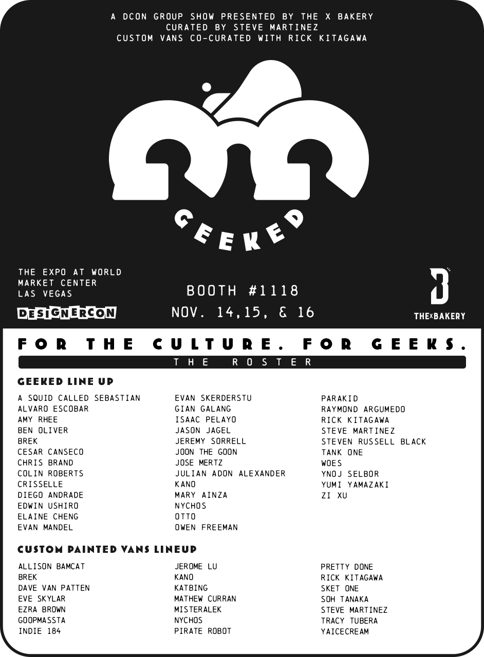 GEEKED is a group show celebrating the inner geek in all of us—drawing inspiration from comic books, anime, video games, music, cult classics, and everything in between.